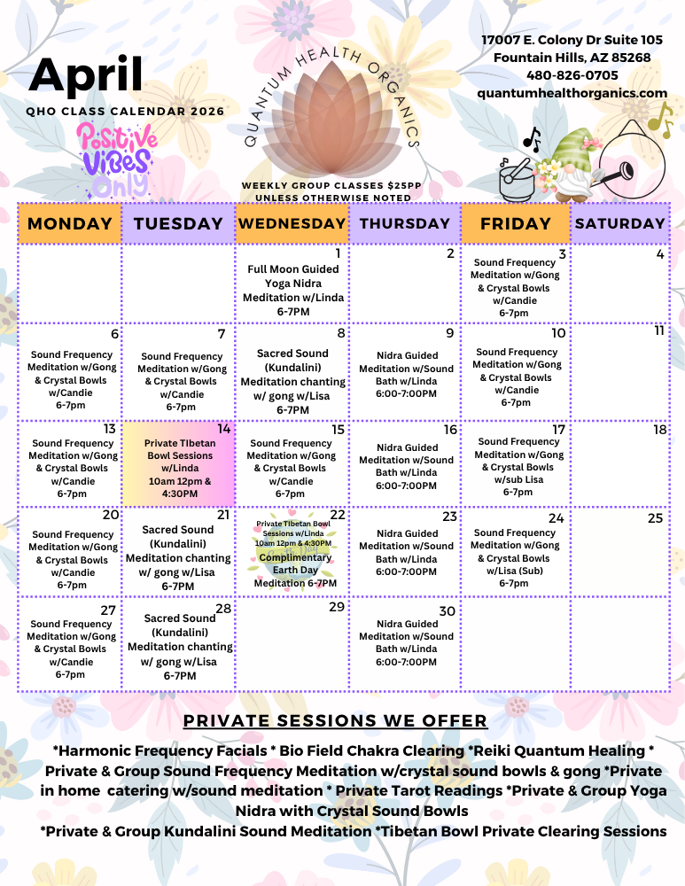 • Reiki & Quantum Energy Healing • Biofield Tuning & Chakra Clearing • Harmonic Frequency Facials • Private Sound Journeys • Tibetan Bowl Clearing Sessions • Private Kundalini or Yoga Nidra with Sound • Voice Frequency Analysis (VHA) Consultations